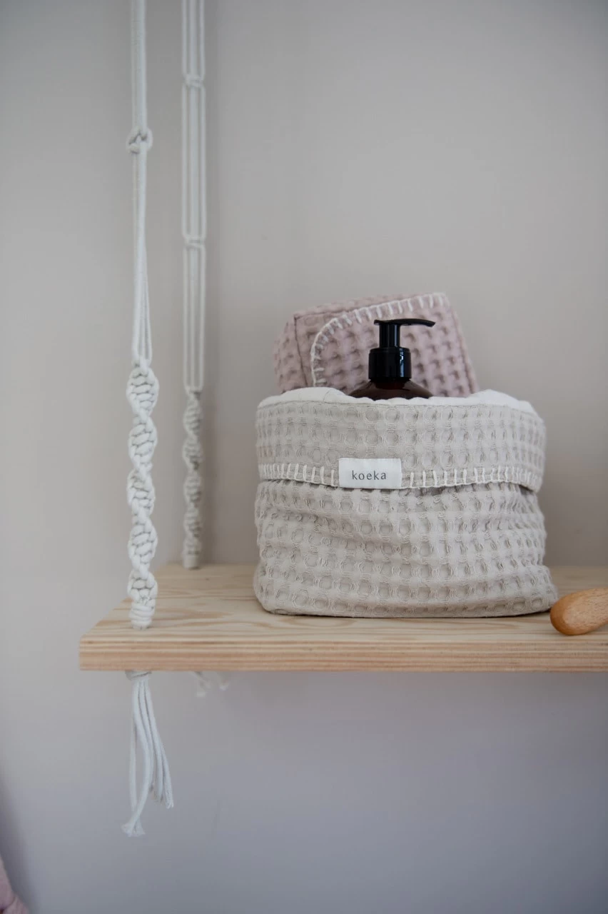 Wo bewahrst du all die losen Gegenstände auf, die man zum Wickeln oder Anziehen des Babys braucht? Mit einem Kommodenkorb hast du alles an einem Ort und in bequemer Reichweite. Der Korb ist sowohl praktisch und stylisch und ein Must-Have auf der Kommode! Koeka stellt Aufbewahrungskörbe in verschiedenen Stilen und Farben her, so dass man immer einen Korb findet, der zur Einrichtung des Babyzimmers passt. Der Korb ist auf der Innenseite verstärkt, so dass er nicht zusammenfällt und man kann den Rand umklappen, um einen anderen Look zu schaffen.