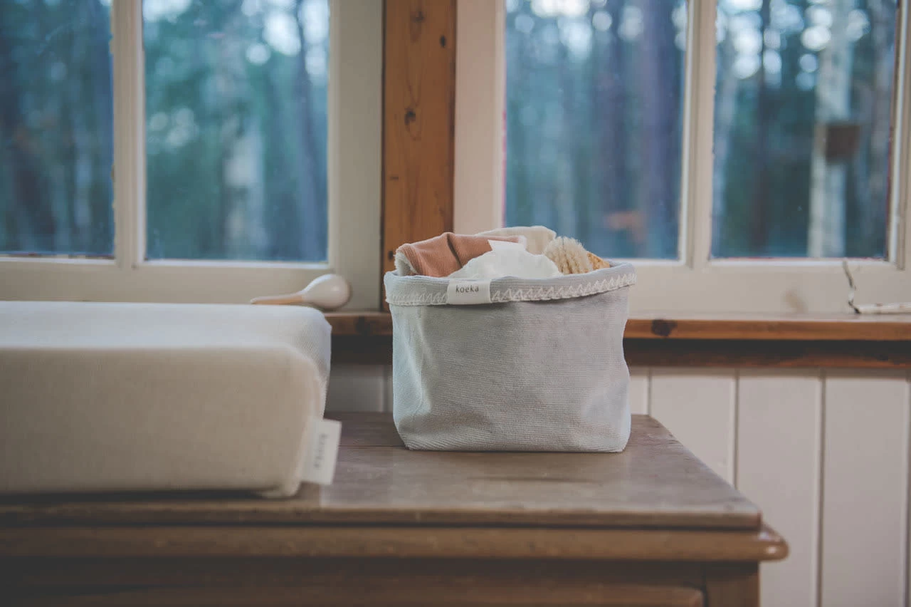 Wo bewahrst du all die losen Gegenstände auf, die man zum Wickeln oder Anziehen des Babys braucht? Mit einem Kommodenkorb hast du alles an einem Ort und in bequemer Reichweite. Der Korb ist sowohl praktisch und stylisch und ein Must-Have auf der Kommode! Koeka stellt Aufbewahrungskörbe in verschiedenen Stilen und Farben her, so dass man immer einen Korb findet, der zur Einrichtung des Babyzimmers passt. Der Korb ist auf der Innenseite verstärkt, so dass er nicht zusammenfällt und man kann den Rand umklappen, um einen anderen Look zu schaffen.
